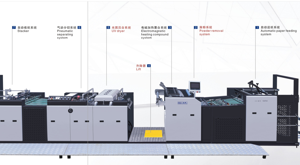 YFMA-590 macchina di laminazione completamente automatica come attrezzatura professionale utilizzata per la laminazione di pellicole di plastica sulla superficie di materiale da stampante di carta.