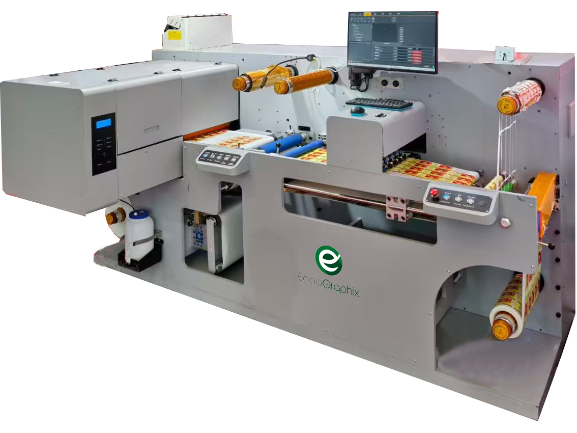 ECOO Label IQ-330 macchina di stampa e taglio integratapuò stampare CMYK, inchiostri bianchi e vernici su carta, materiali adesivi e pellicole di plastica di imballaggio flessibile..Questo lo rende una soluzione economica per la stampa di schede, la produzione di piccoli lotti e le etichette personalizzate.